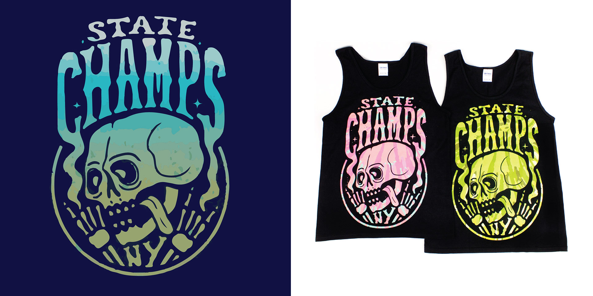 Reversible tank design for State Champs. This was sold during the summer for their Warped Tour run.